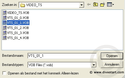 Verplaats nu de 3 of 4 vob files die Dvd meastro net heeft aangemaakt