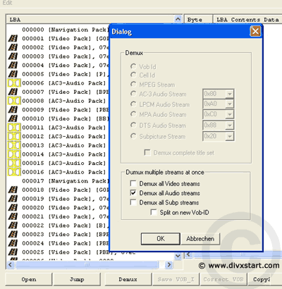 Klik onderaan nu op Demux. En vink Demux all Audio streams