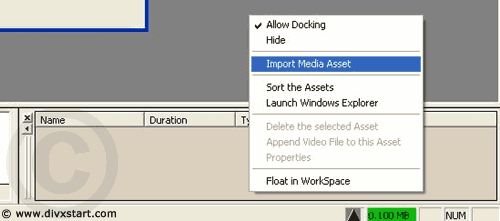 Vink Import Media Asset aan, en selecteer je m2v en ac3 bestand