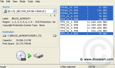 Selecteer alle files behalve de vob files waar de film instaat.
